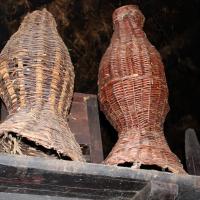 Comenzaremos por explicar qué es una “nasa”. Se trata de una especie de cesta con una forma muy similar a la de un ánfora. Se construye de manera artesanal con unas ramas muy finas de “salgueiro” (salguero). Se hace manualmente mediante un proceso muy parecido al de fabricación de cestas. Precisamente se hace con ramas de salgueiro porque son los árboles que crecen cerca de los ríos, de manera que el color de la nasa es muy parecido al de la maleza de las orillas. Así, la posible pesca se confunde, o no desconfía y huye. Se suele pescar en los ríos y arroyos, normalmente en balsas de agua creadas con banzaos o valladas, usualmente construidas con vigas de madera y ramas. Su uso está pensado para regadío del pasto de los prados. La diferencia entre banzao y vallada es que el banzao es más profundo que la vallada. Para pescar las ricas truchas del río Ancares, colocaríamos la boca de la nasa a favor de corriente, ya que las truchas suelen nadar a contracorriente. Así es más sencillo que caigan en la trampa cuando el pescador “furgue en ellas” o las “escaxigue” (molestarlas con un palo largo para sacarlas de su zona de confort) desde otra parte más inferior del río. Si consiguen molestarlas, tienden a escapar a contracorriente, hacia partes más altas del río, buscando incluso recovecos oscuros, como el de la propia nasa, que espera paciente con la boca abierta, anclada al río con ramas y piedras. -